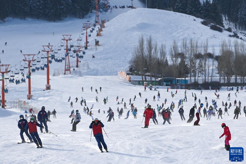 滑雪愛好者在新疆絲綢之路國(guó)際度假區(qū)滑雪場(chǎng)滑雪(2022年12月5日攝)。新華社記者 丁磊 攝