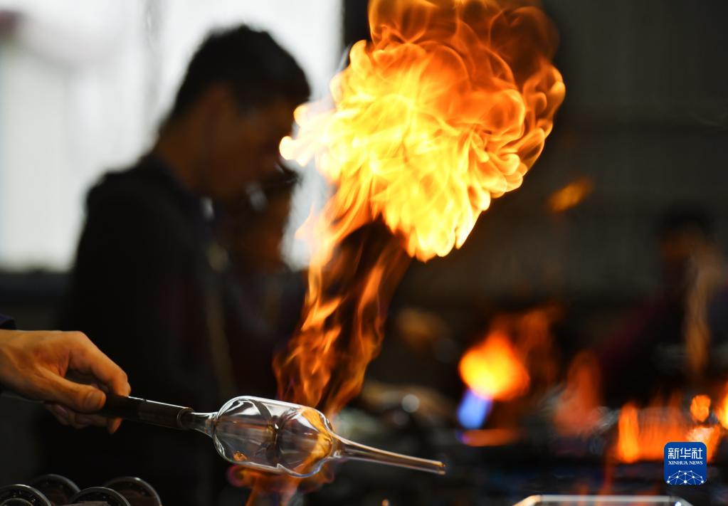 2月11日,河北省河間市一家工藝玻璃制品生產企業工人在車間內加工產品。