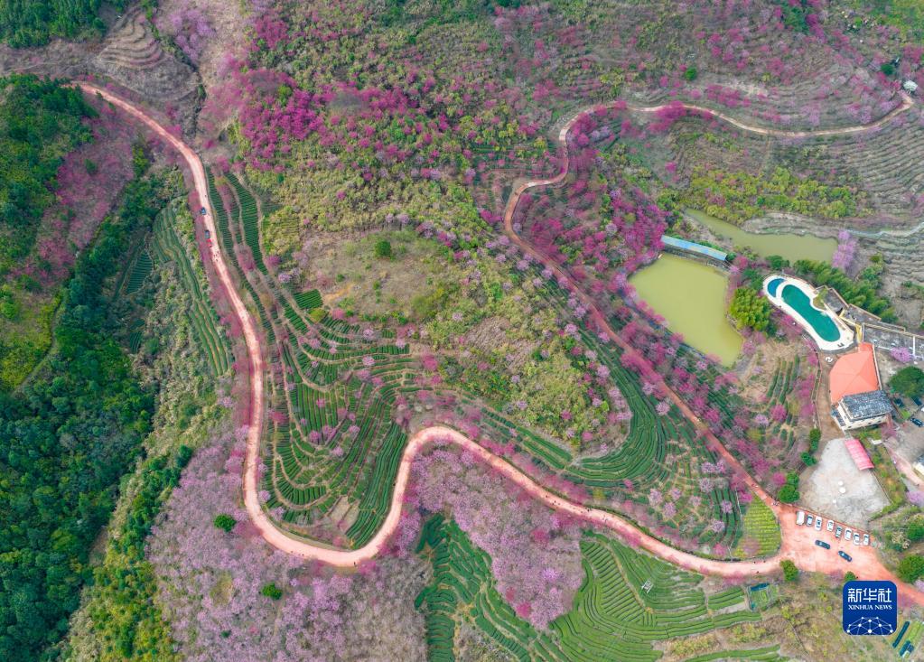 閩南春來早,櫻花始盛開。近日,在福建省南靖土樓景區的紫云山生態園,6萬多株櫻花陸續盛開,吸引眾多游客前來感受漫山的濃濃春意。