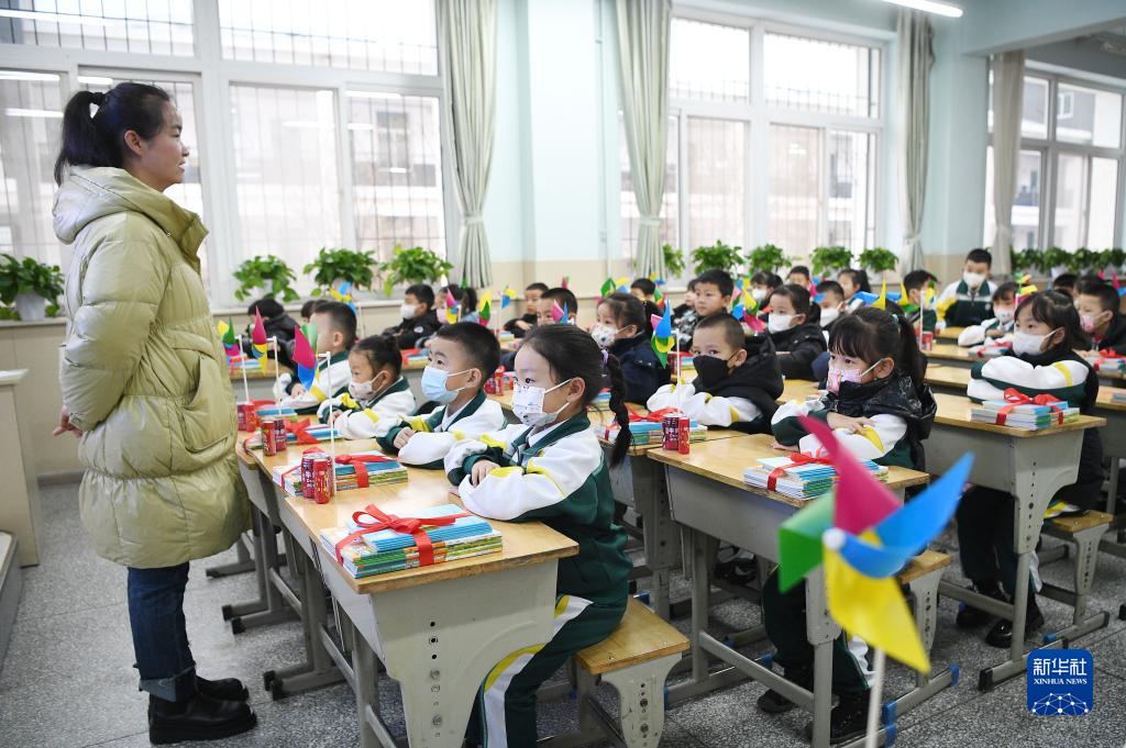 2月12日,銀川市興慶區(qū)實(shí)驗(yàn)二小學(xué)生在布置一新的教室里迎來新學(xué)期。