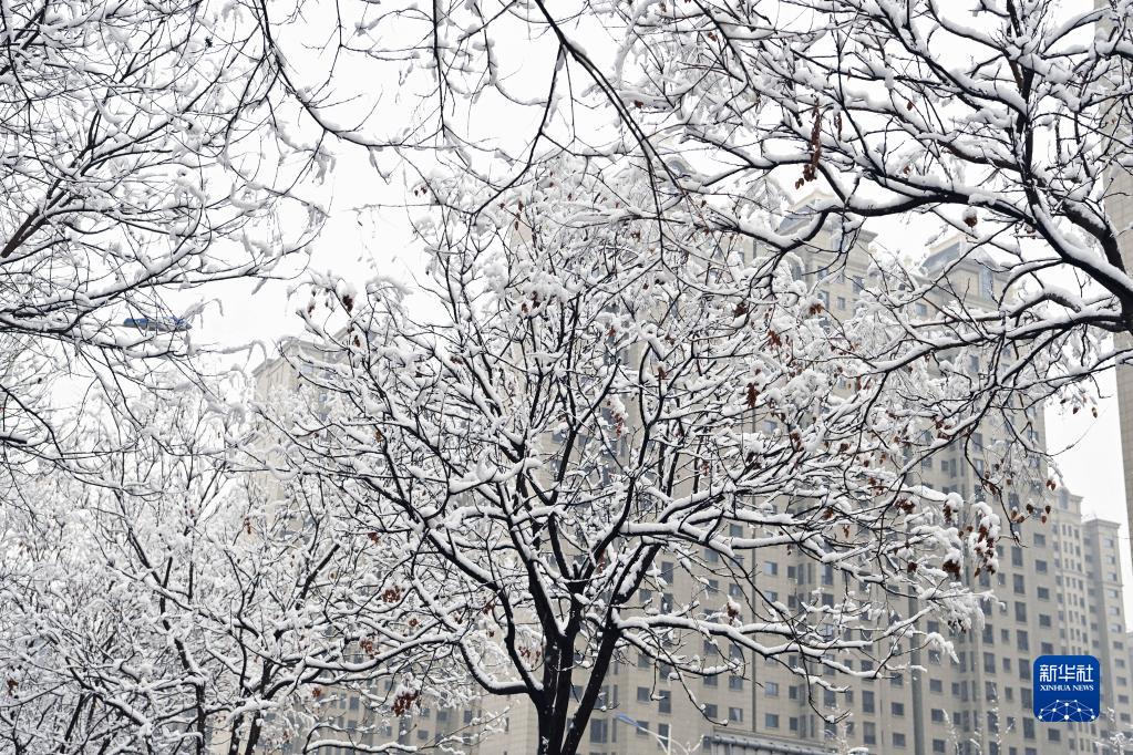 當日,山西省太原市迎來降雪天氣,雪落枝頭,景色迷人。