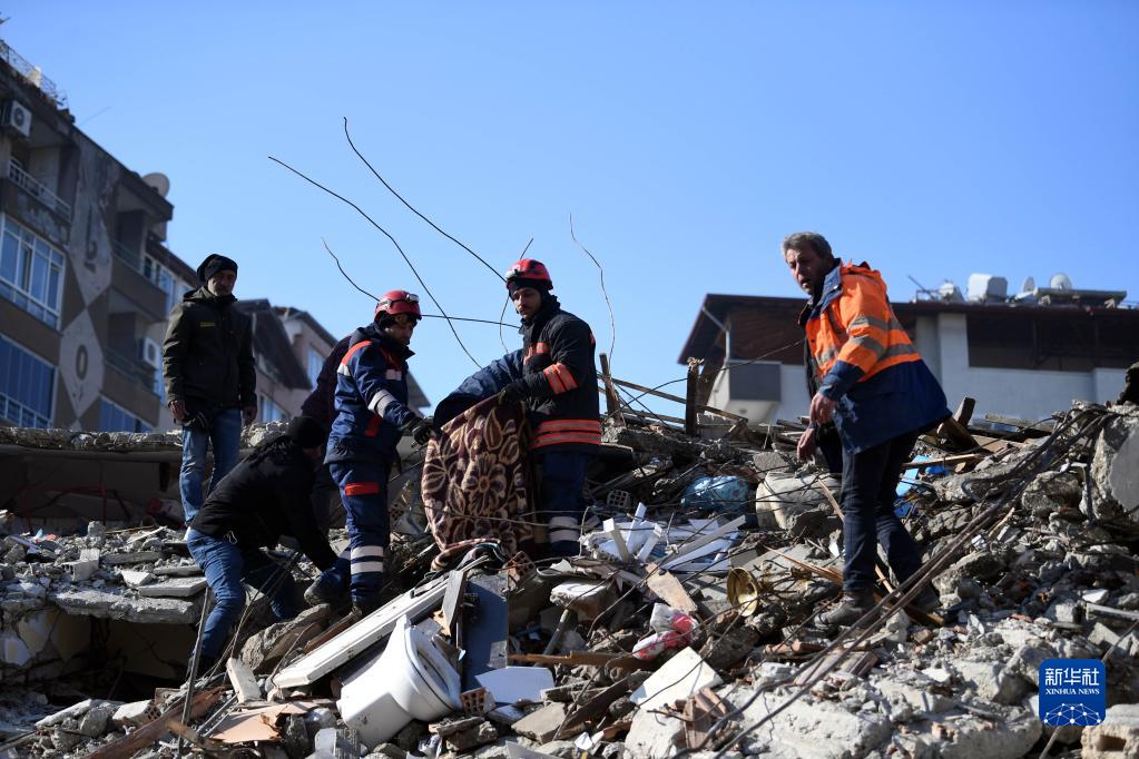 2月11日,救援人員在土耳其哈塔伊省安塔基亞市參與搜救。