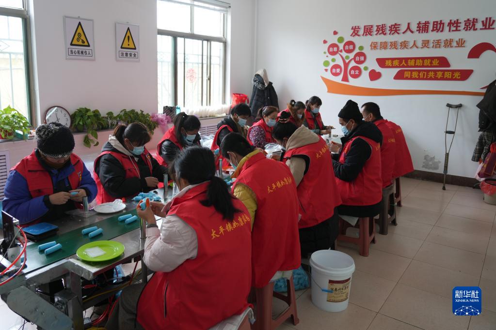 2月12日,在山東鄒城市太平鎮(zhèn)如康家園內(nèi),殘疾人在進(jìn)行彩色橡皮泥生產(chǎn)加工。