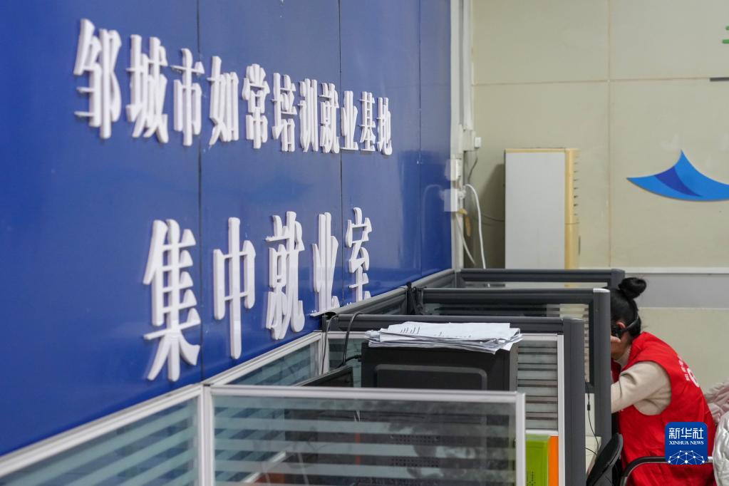 2月12日,在山東鄒城市中心店鎮如康家園內,殘疾人在進行電話客服工作。