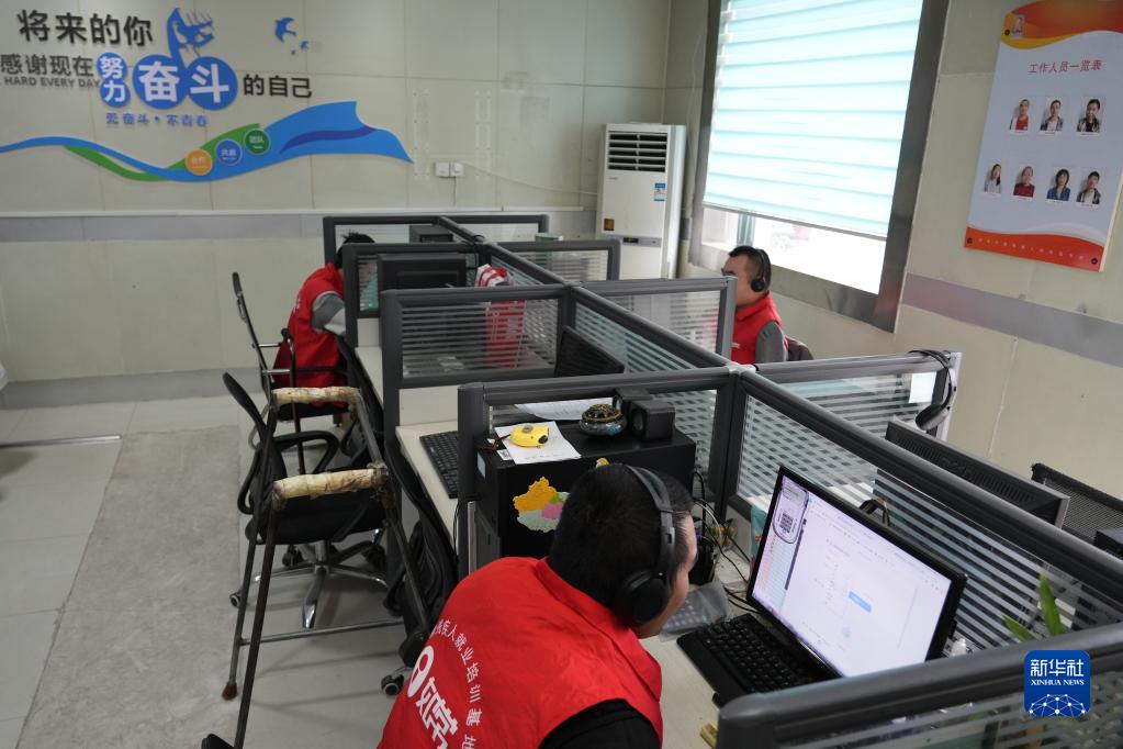 2月12日,在山東鄒城市中心店鎮如康家園內,殘疾人在進行電話客服工作。