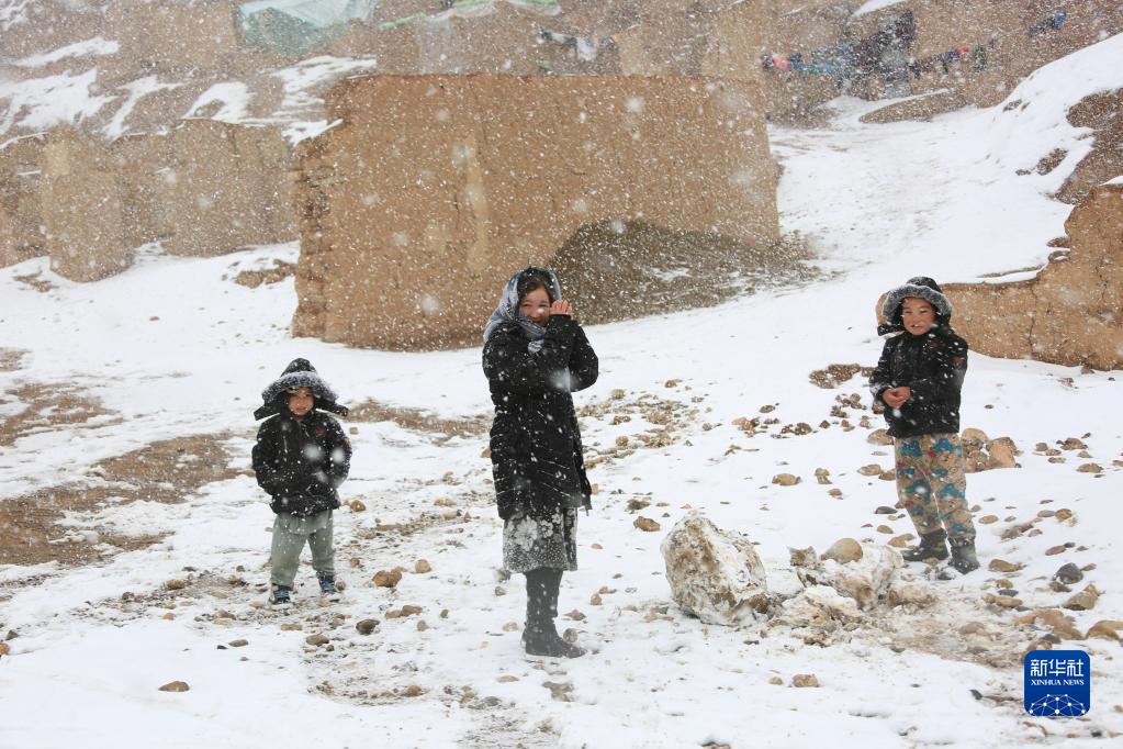 2月9日,孩子們在阿富汗巴米揚省的雪地上玩耍。