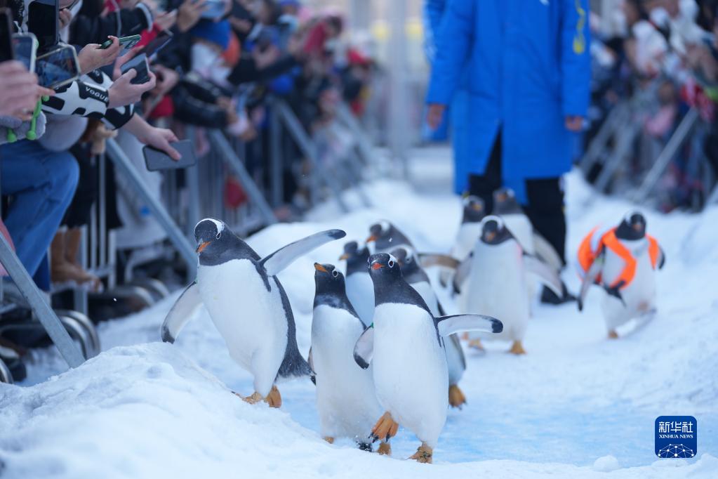 時下,“冰城”哈爾濱市正值冰雪旅游季。哈爾濱極地公園的企鵝每天都會外出“巡游”,吸引許多游客前來觀賞。