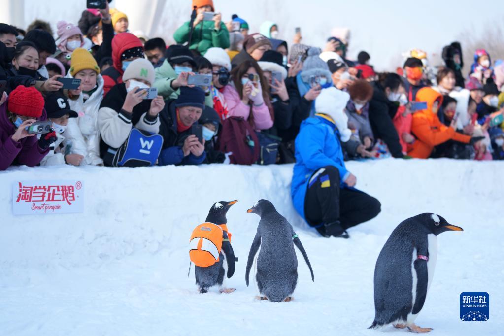 時下,“冰城”哈爾濱市正值冰雪旅游季。哈爾濱極地公園的企鵝每天都會外出“巡游”,吸引許多游客前來觀賞。