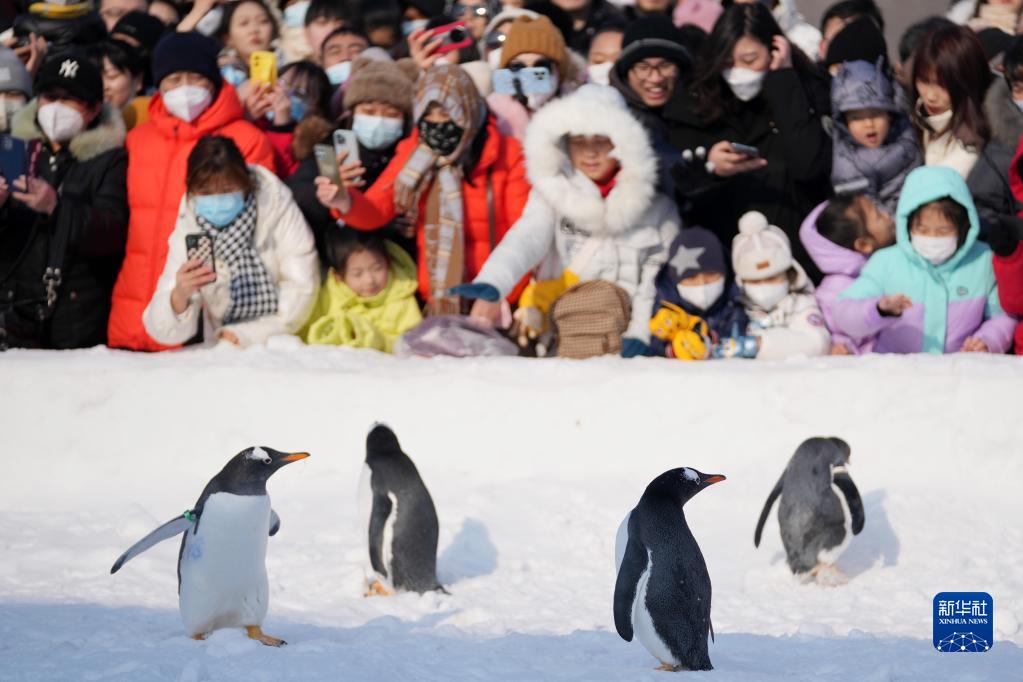 時下,“冰城”哈爾濱市正值冰雪旅游季。哈爾濱極地公園的企鵝每天都會外出“巡游”,吸引許多游客前來觀賞。