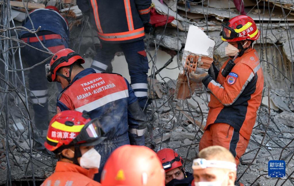 2月12日,中國救援隊在土耳其哈塔伊省安塔基亞市參與搜救。
