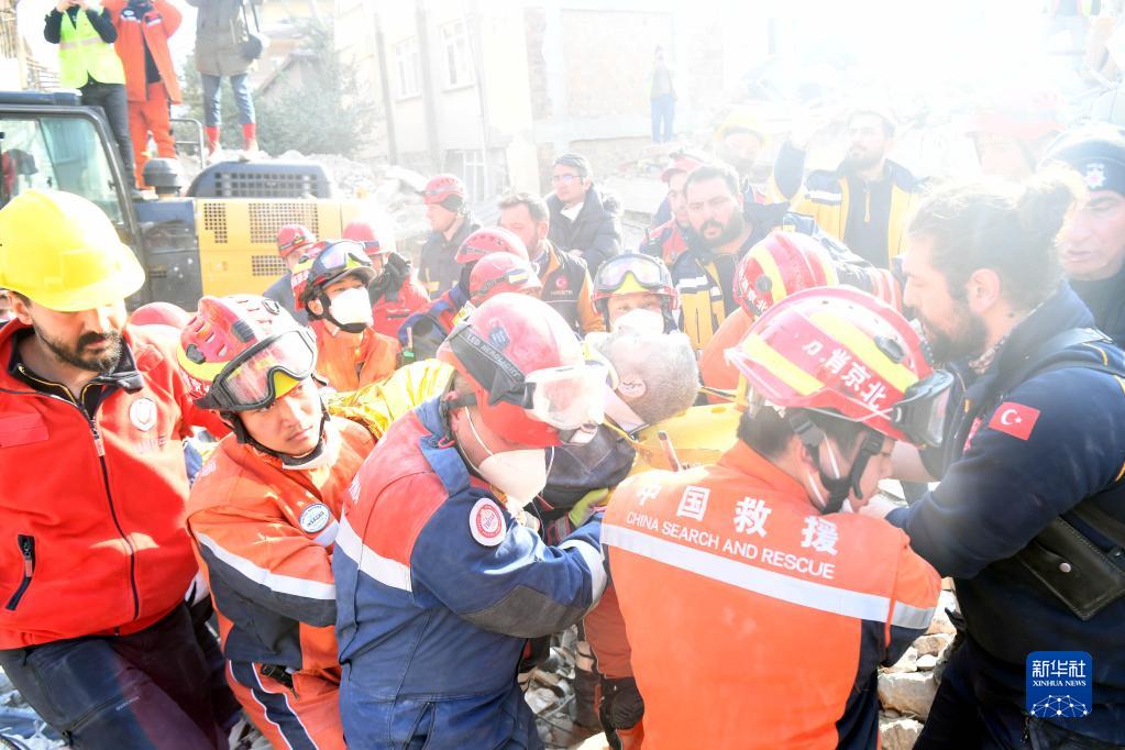 當地時間12日下午,正在土耳其哈塔伊省安塔基亞市實施搜救的中國救援隊營救出一名幸存者。