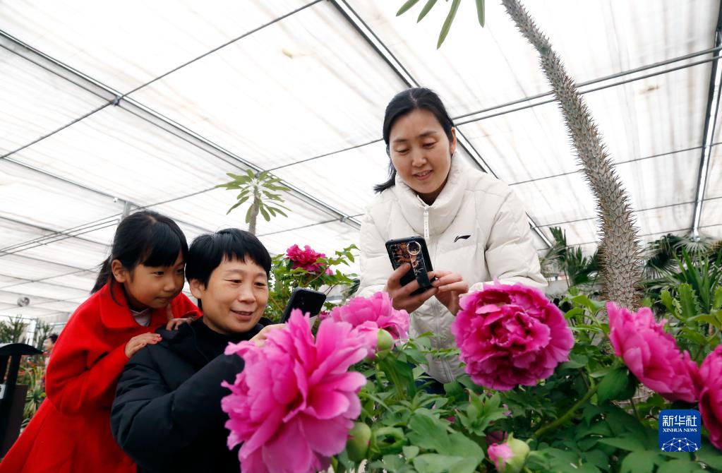 2月12日,游客在南和區(qū)賈宋鎮(zhèn)一家農(nóng)業(yè)綜合體賞花。