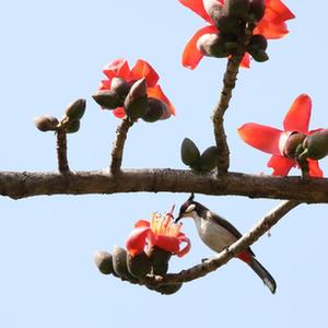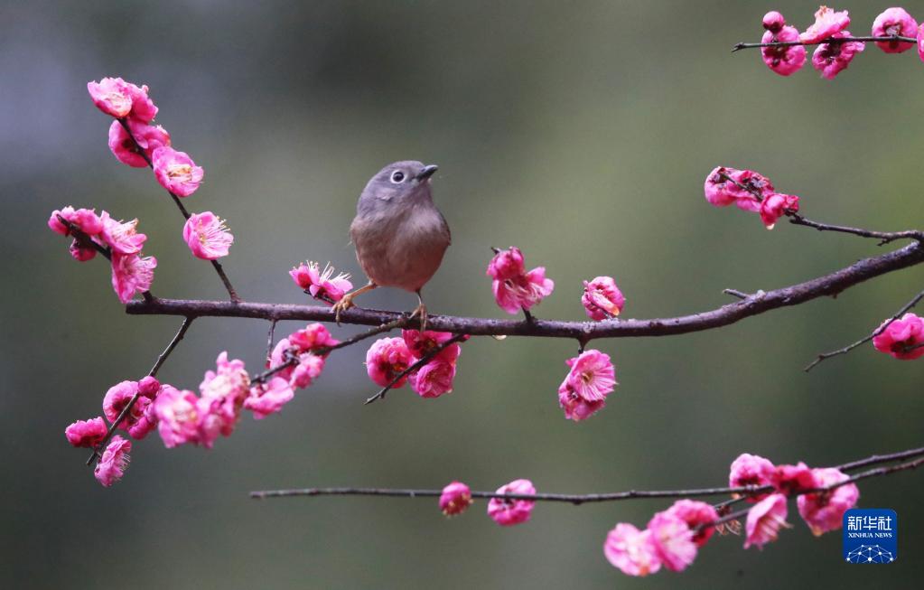 2月12日,在湖南省衡陽市雁峰區五星村,小鳥在梅花枝頭停留。