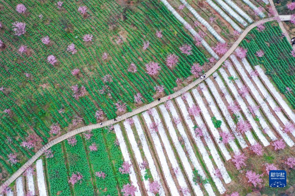 2月12日,游人在四川省瀘州市江陽區丹林鎮建設村的“櫻花谷”游玩。