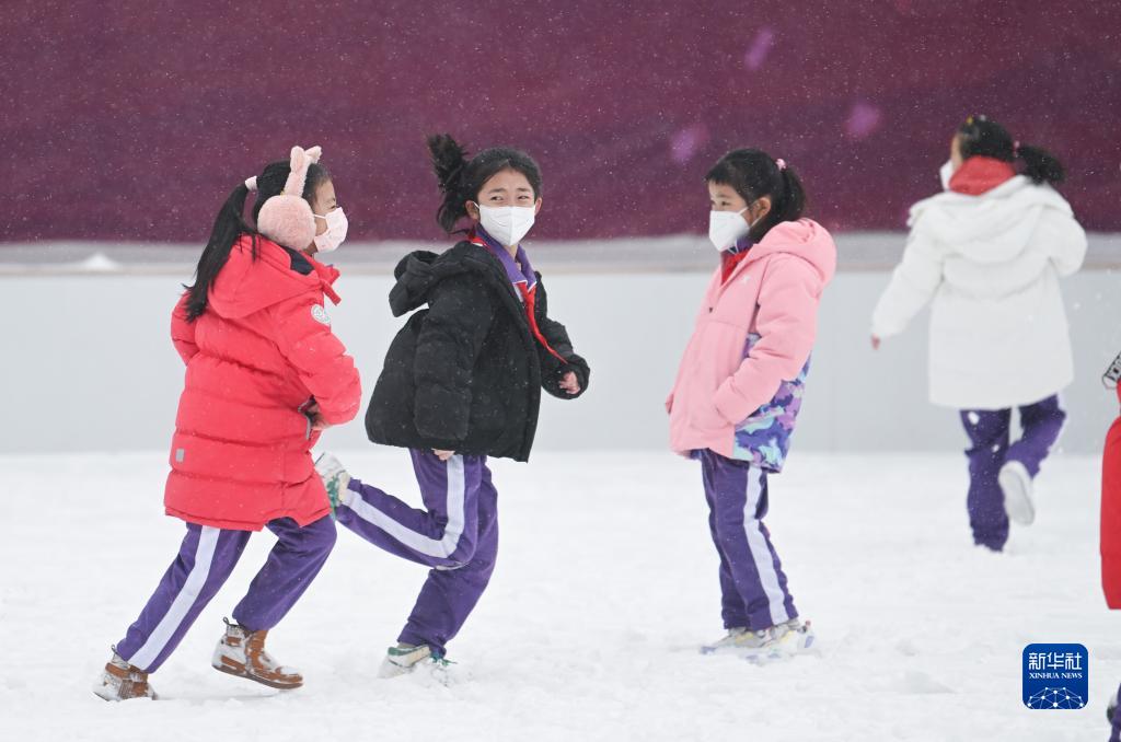 當日,青海省西寧市的小學生迎來開學首日,孩子們在降雪中開啟新學期。