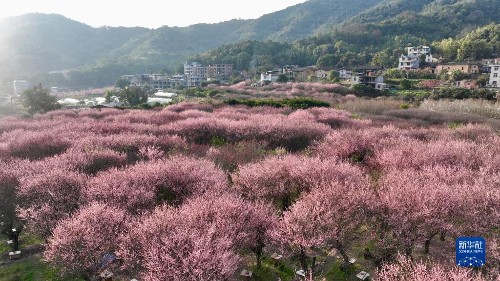 近日,福建省福州市閩侯縣荊溪鎮關中村古響自然村一百多畝梅花如期盛開,如同彩霞彌漫山間,吸引眾多游客前來游玩觀賞,給古樸的村落帶來勃勃生機。