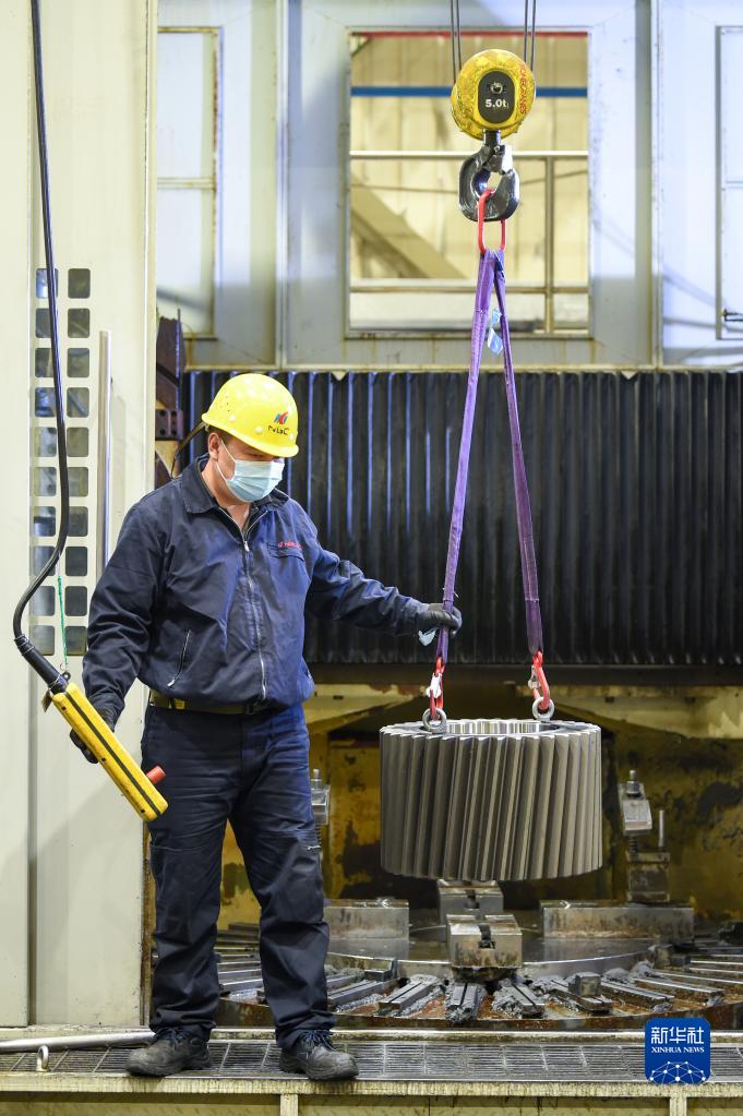 2月13日,工人在南高齒(包頭)傳動設備有限公司生產車間內作業。