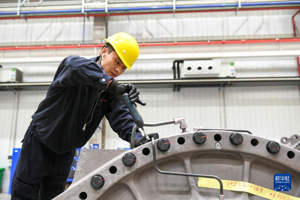 2月13日,工人在南高齒(包頭)傳動設備有限公司生產車間內作業(yè)。