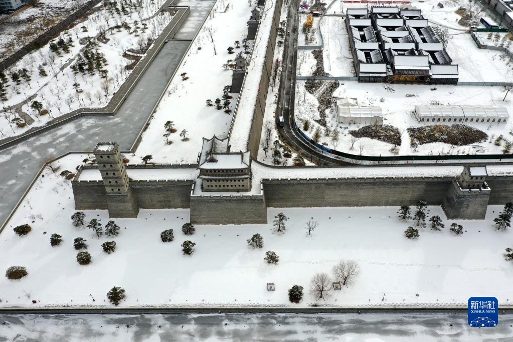 一場降雪過后,位于山西省太原市晉源區的太原古縣城銀裝素裹,美景如畫。