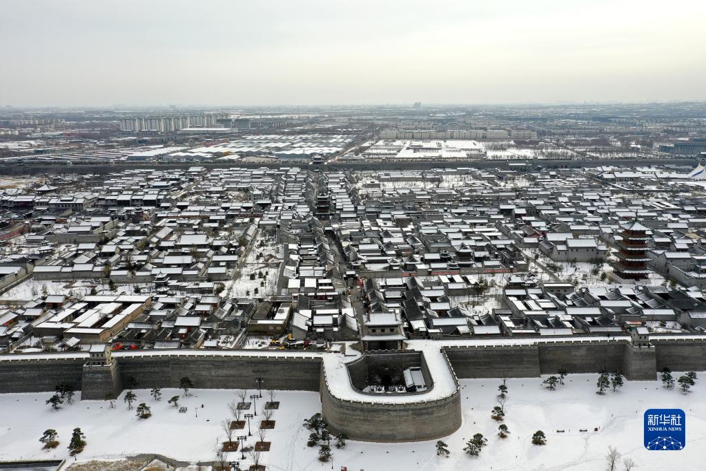 一場降雪過后,位于山西省太原市晉源區的太原古縣城銀裝素裹,美景如畫。