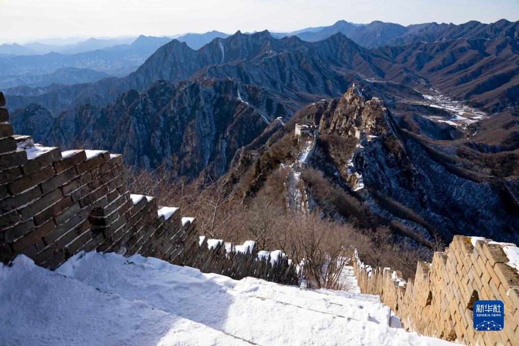 近日,北京懷柔迎來降雪。雪后的箭扣長城銀裝素裹,壯觀秀麗。