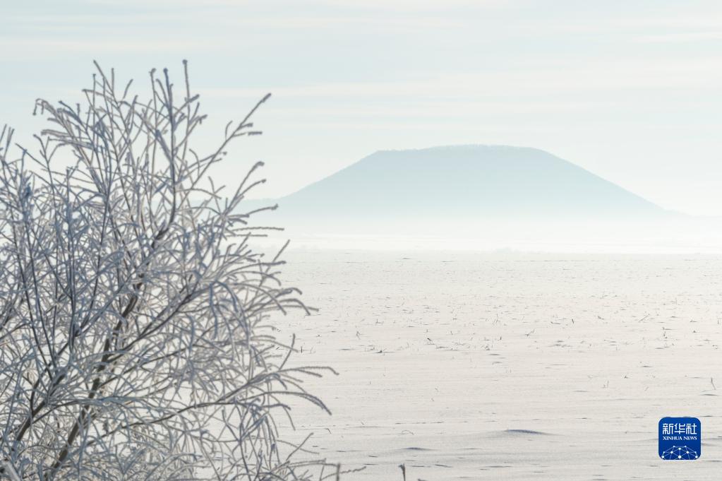 位于黑龍江省黑河市的五大連池風(fēng)景區(qū)火山與霧凇景觀(2月13日攝)。