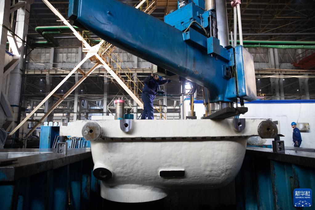 2月13日,工人在哈電集團哈爾濱汽輪機廠有限責任公司生產車間內作業。新華社記者 張濤 攝