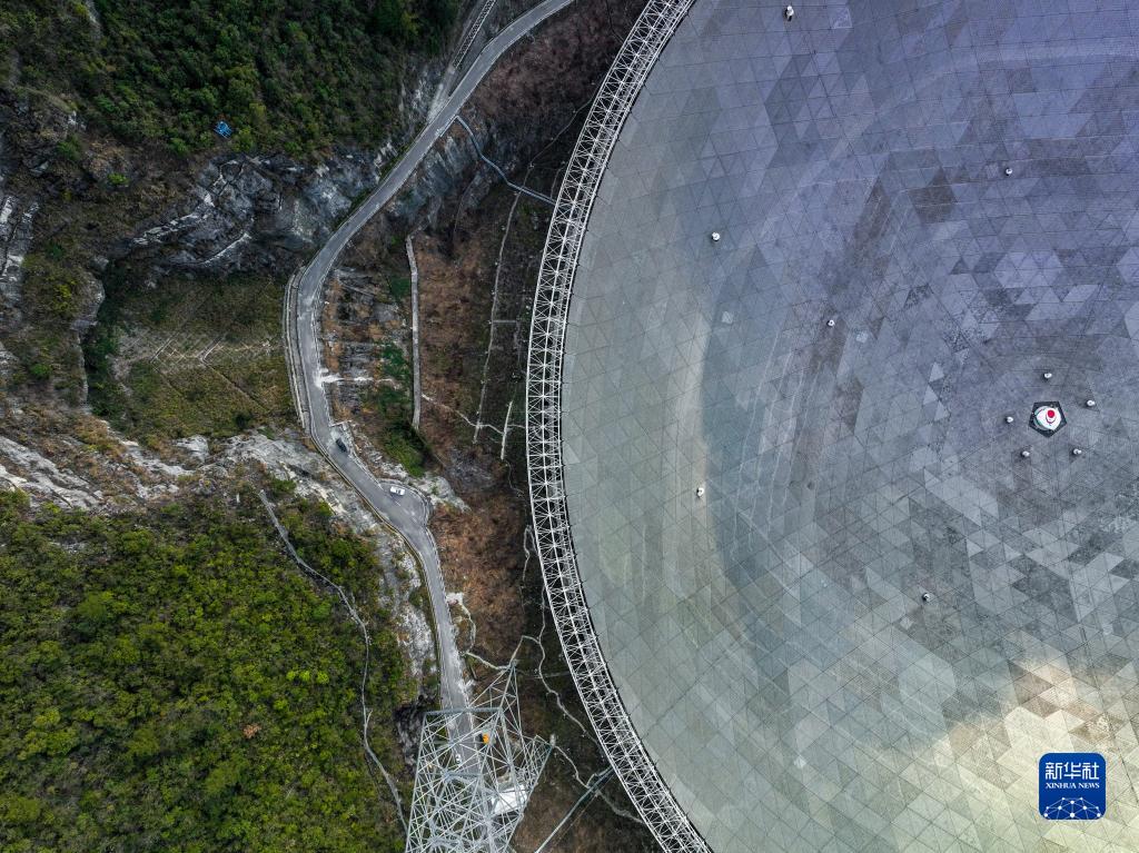 2月13日拍攝的“中國天眼”局部(維護保養(yǎng)期間拍攝,無人機照片)。