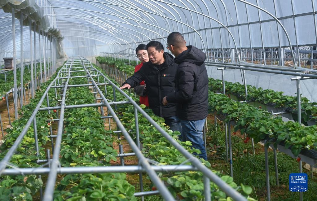 2月14日,在杭州市臨安區(qū)板橋鎮(zhèn)草莓種植基地內(nèi),“田間課堂”小分隊(duì)的農(nóng)技專家馬紹鋼(中)在了解立體栽培的有機(jī)草莓的生長(zhǎng)及銷(xiāo)售情況,并對(duì)種植戶提出的問(wèn)題進(jìn)行解答。