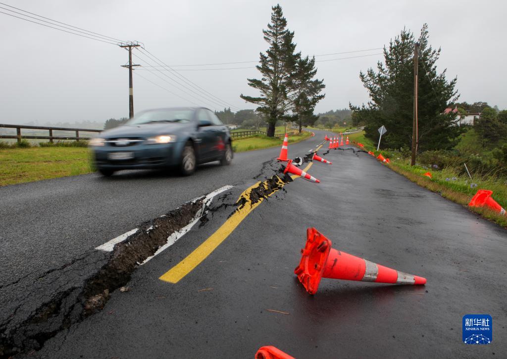 這是2月14日在新西蘭奧克蘭拍攝的一處受損道路。