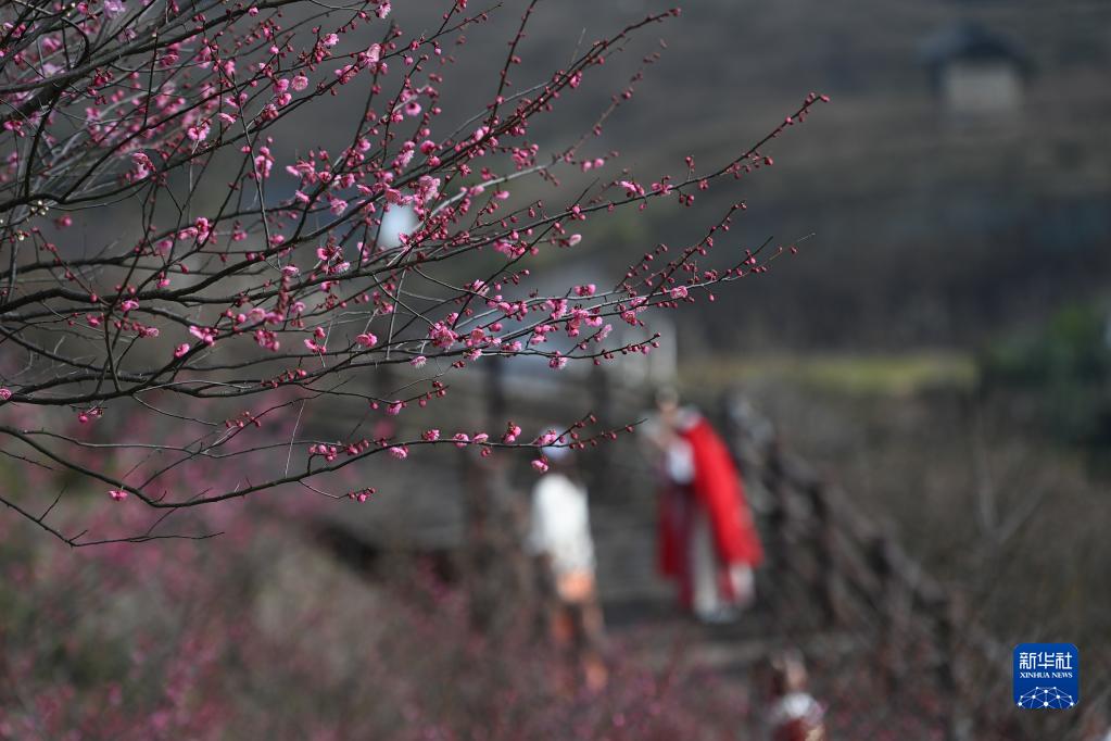 當日,西塞山第五屆梅花節在浙江省湖州市吳興西塞山旅游度假區原鄉小鎮景區開幕,盛開的梅花吸引不少游客前來觀賞。