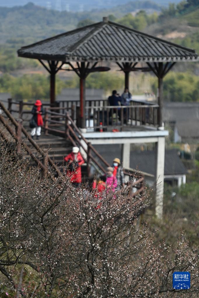 當日,西塞山第五屆梅花節在浙江省湖州市吳興西塞山旅游度假區原鄉小鎮景區開幕,盛開的梅花吸引不少游客前來觀賞。