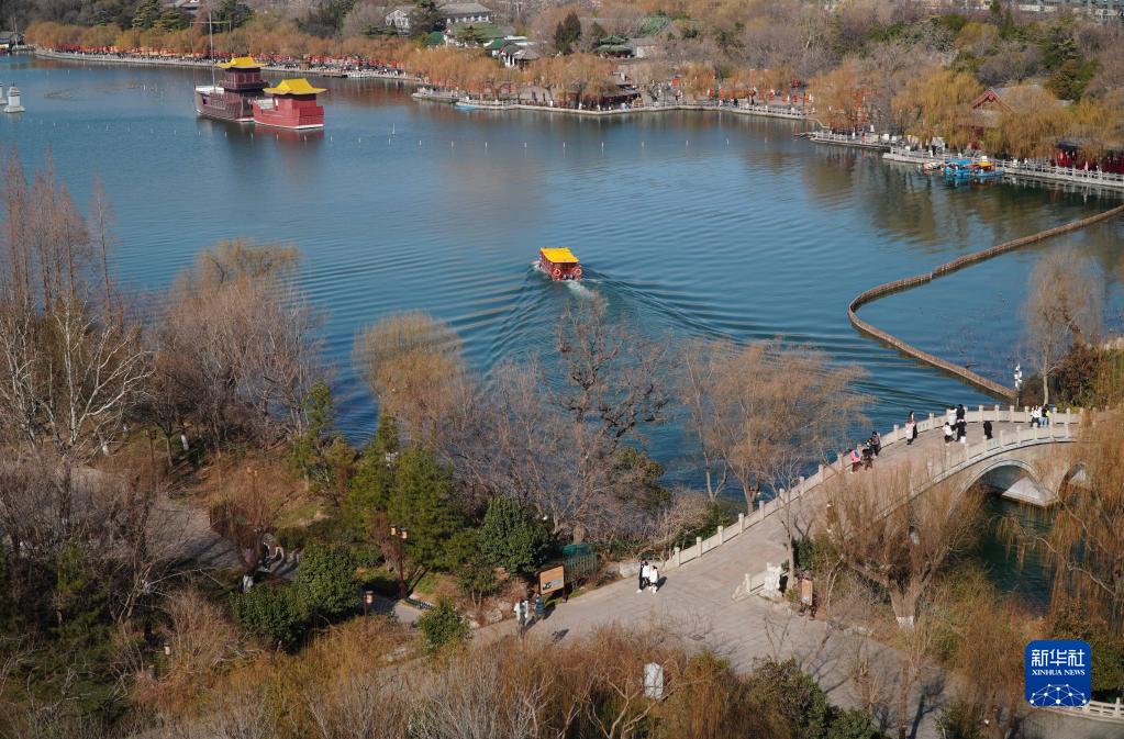 2月14日,山東省濟南市天下第一泉風景區,游客在大明湖游覽。