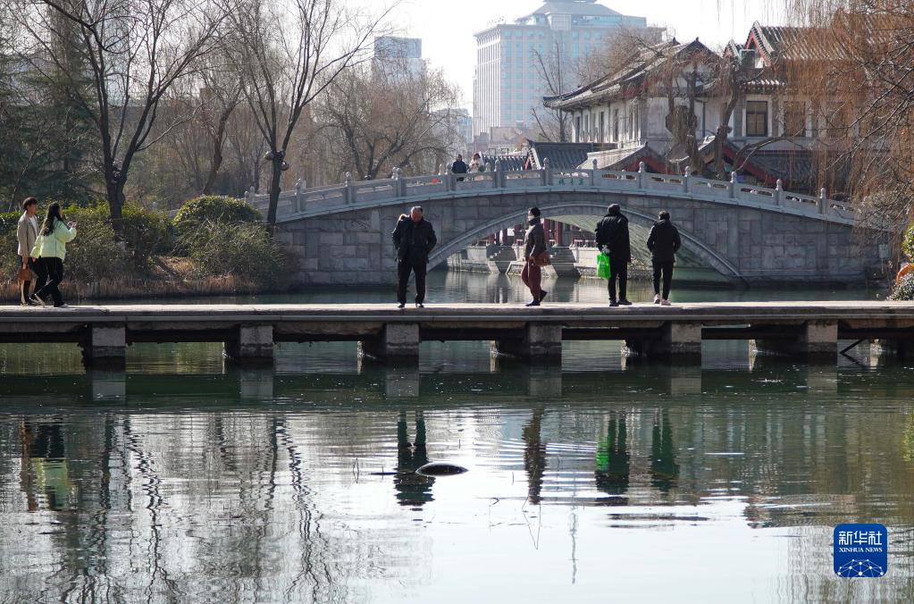 2月14日,山東省濟南市天下第一泉風景區,游客在大明湖游覽。