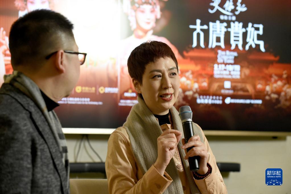 2月14日,京劇演員史依弘(右)在媒體見面會(huì)上分享《大唐貴妃》的創(chuàng)排故事。
