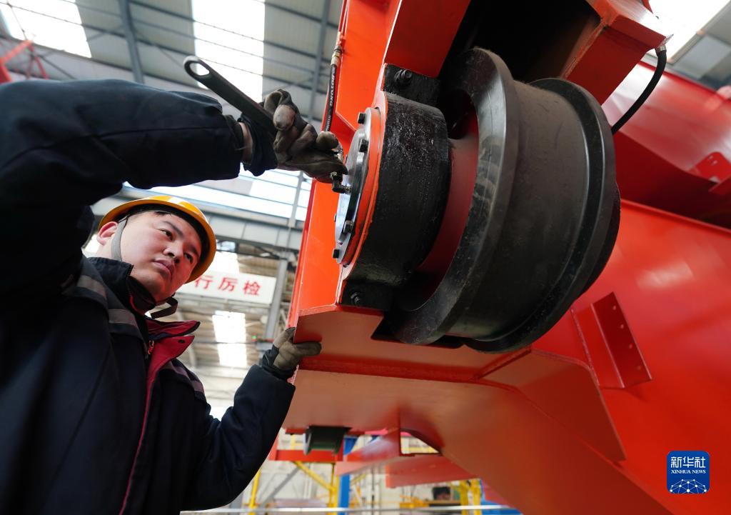 2月14日,工人在唐山市豐潤區一家起重設備制造企業的生產車間工作。