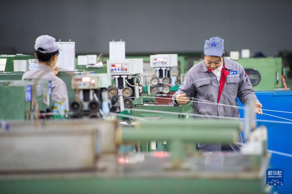 2月14日,在位于株洲市淥口經開區南洲工業園的株洲兆源機電科技有限公司,工作人員在制造電磁線。