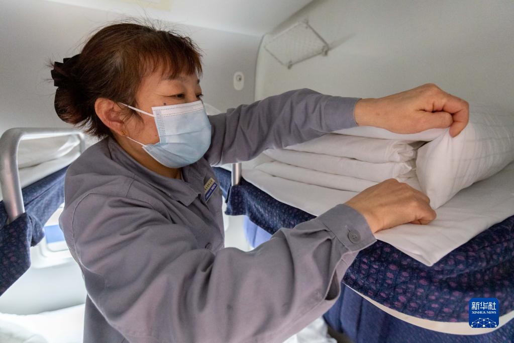 為服務好春運旅客,中國鐵路上海局集團有限公司華鐵旅服上鐵勤佳洗滌廠加強對列車床單、枕套、被單、臺布等物品的洗滌與衛生消毒,今年春運期間臥具總洗滌噸量1280噸左右,日均約32噸。