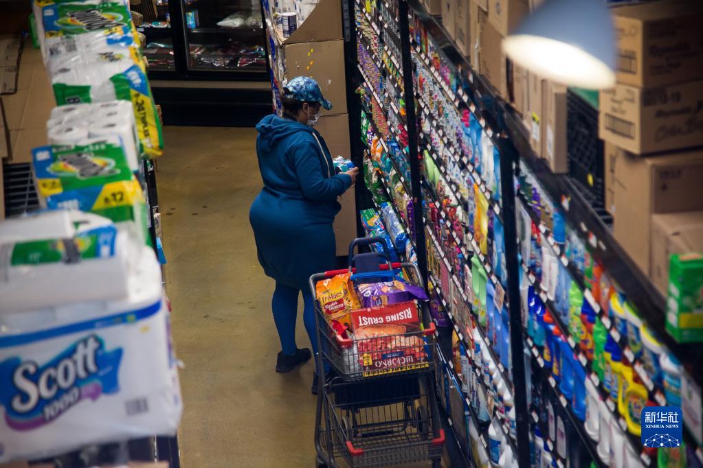 2月14日,顧客在美國紐約市布魯克林一家食品雜貨店選購物品。