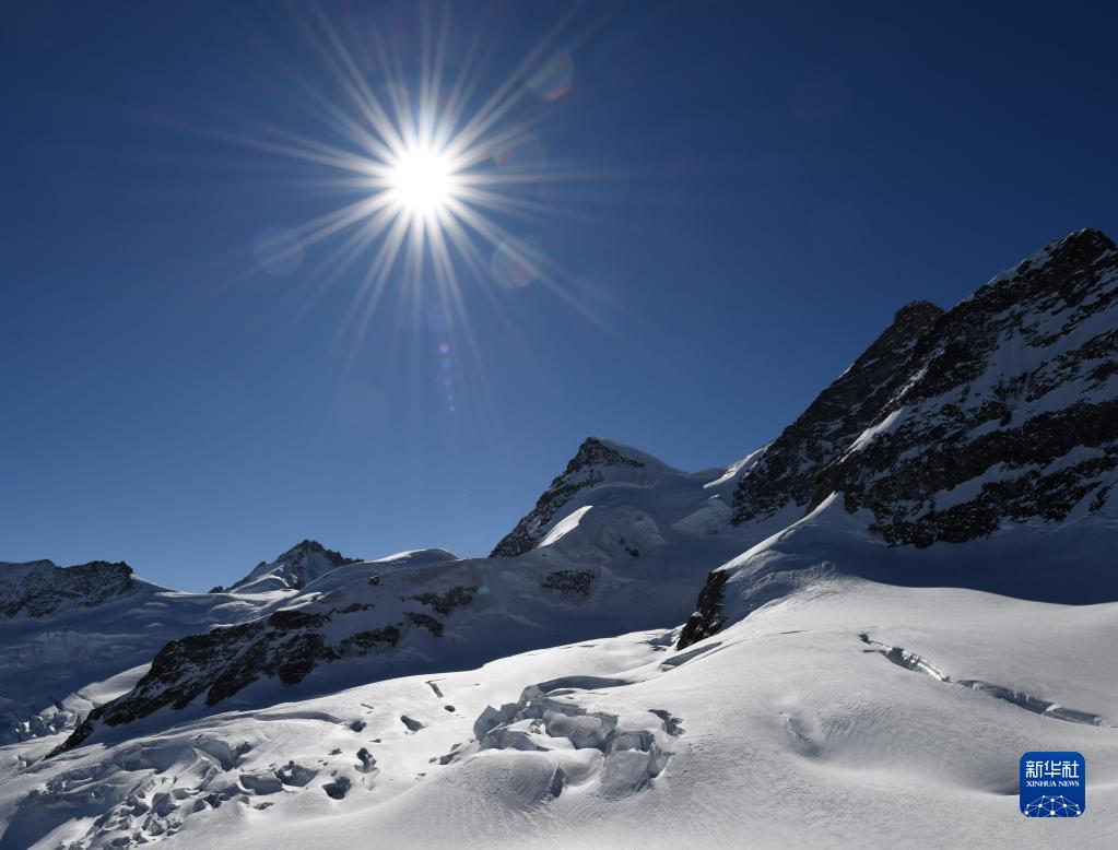這是2月14日在瑞士少女峰斯芬克斯觀景臺拍攝的阿萊奇冰川。