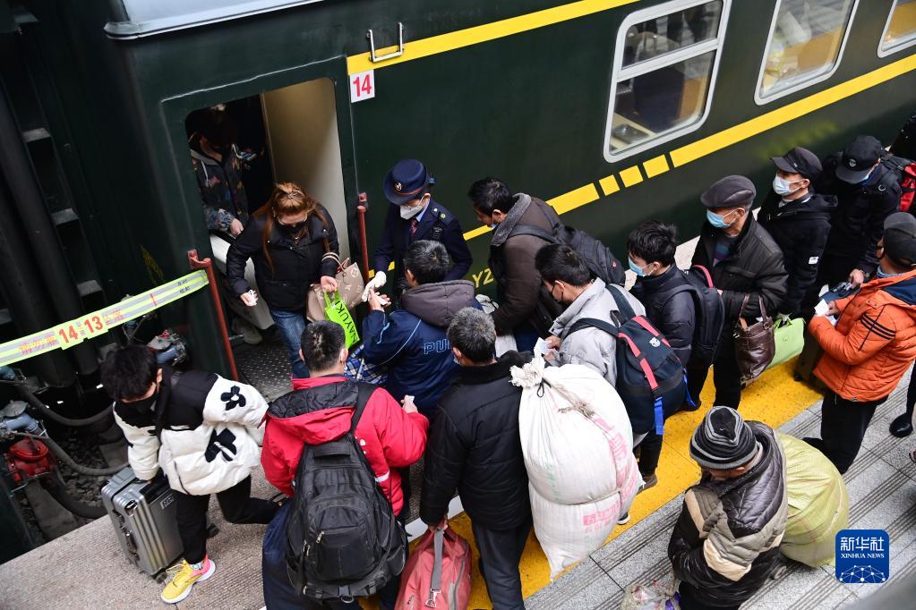 2月15日,旅客在西安站進(jìn)站乘車。
