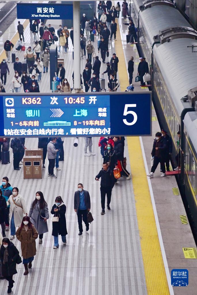 2月15日,乘坐K362次列車的旅客抵達西安站。