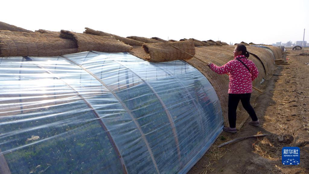 2月15日,河南省開封市禹王臺(tái)區(qū)汪屯鄉(xiāng)松樓村農(nóng)民在地里管理蔬菜大棚。