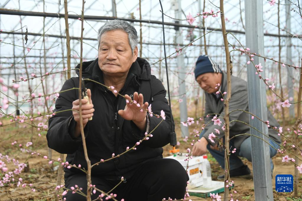近日,北京市平谷區峪口鎮農業中關村示范園的工作人員搶抓農時,進行桃樹剪枝、蔬菜育苗等春耕作業。