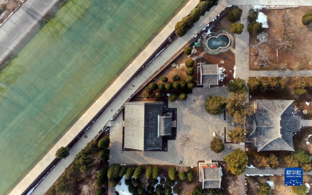 這是2月15日拍攝的石家莊市新華區毗盧寺博物院一景(無人機照片)。