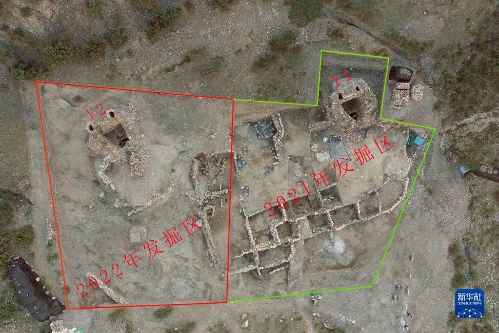 寧夏賀蘭蘇峪口瓷窯遺址2021年和2022年發(fā)掘區(qū)航拍圖(資料照片)。