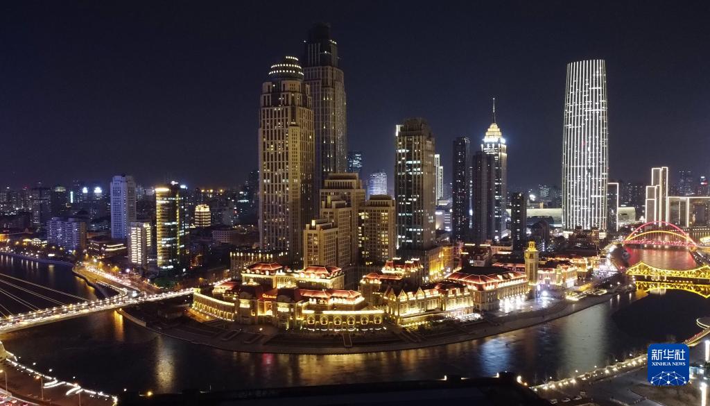 這是2月14日拍攝的天津市和平區津灣廣場(無人機照片)。