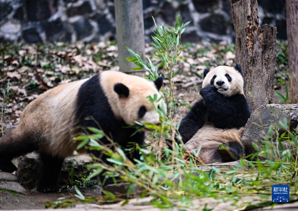 2月15日,在中國(guó)大熊貓保護(hù)研究中心都江堰基地,大熊貓?jiān)诔灾褡印?/p>