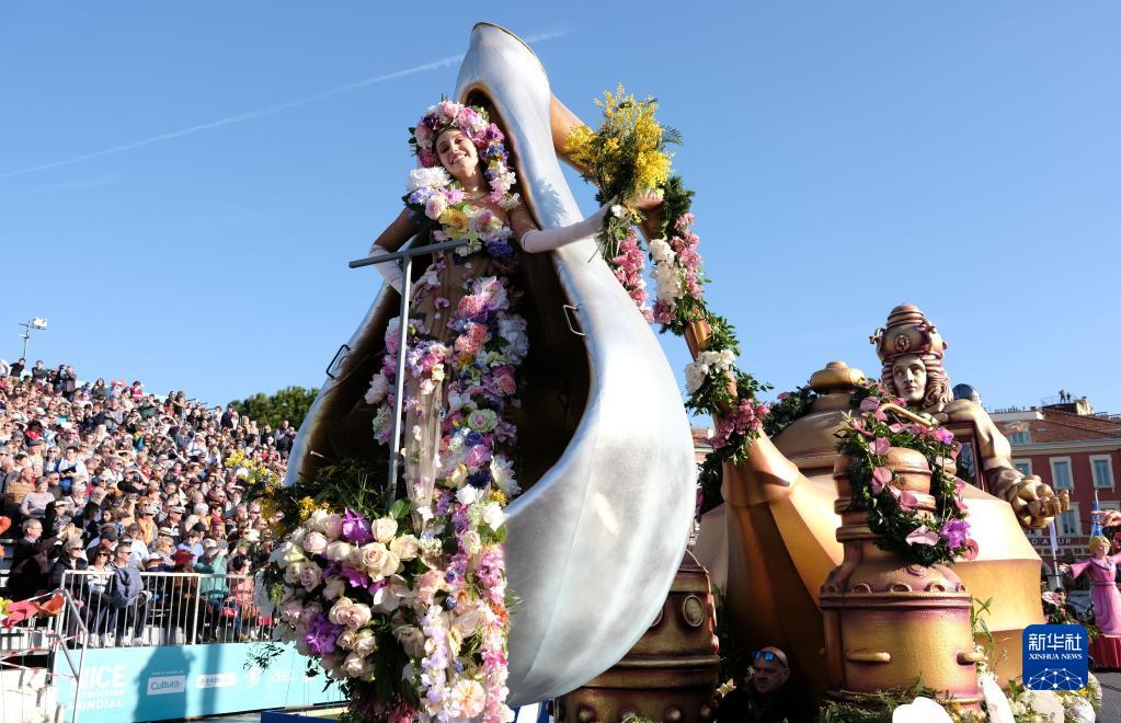 第138屆法國尼斯狂歡節2月10日至26日舉行。在狂歡節15日舉辦的“鮮花大戰”活動中,表演者站在鮮花裝飾的彩車上將鮮花拋向觀眾。