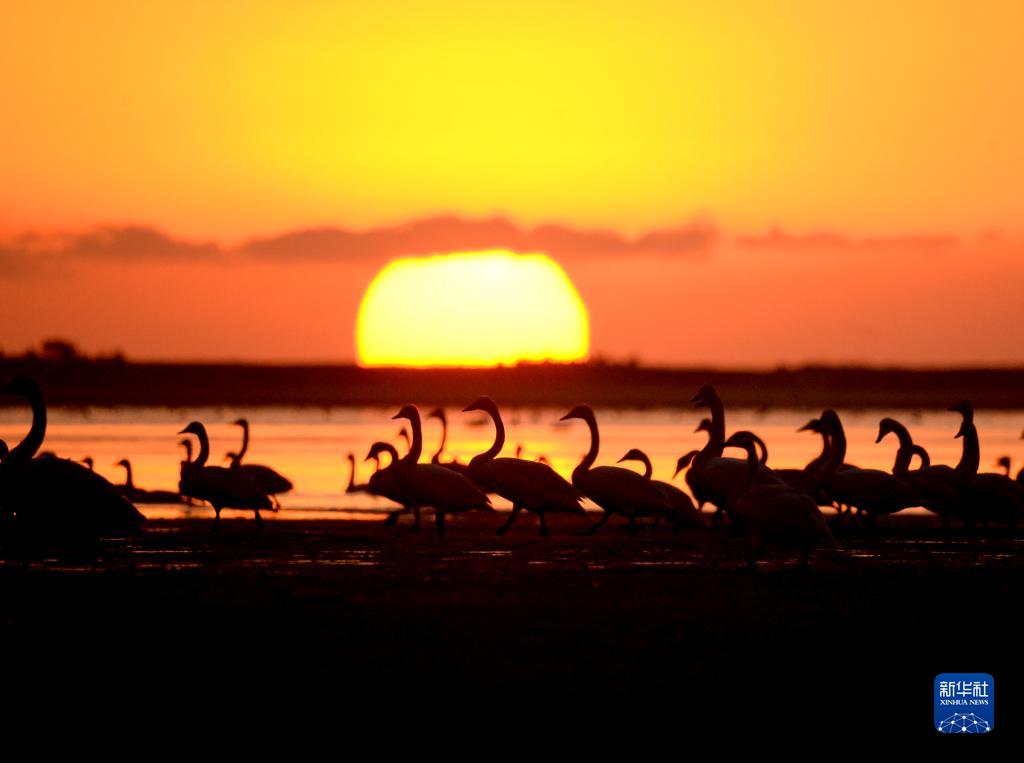 這是2月16日早晨在山東榮成天鵝湖拍攝的大天鵝。